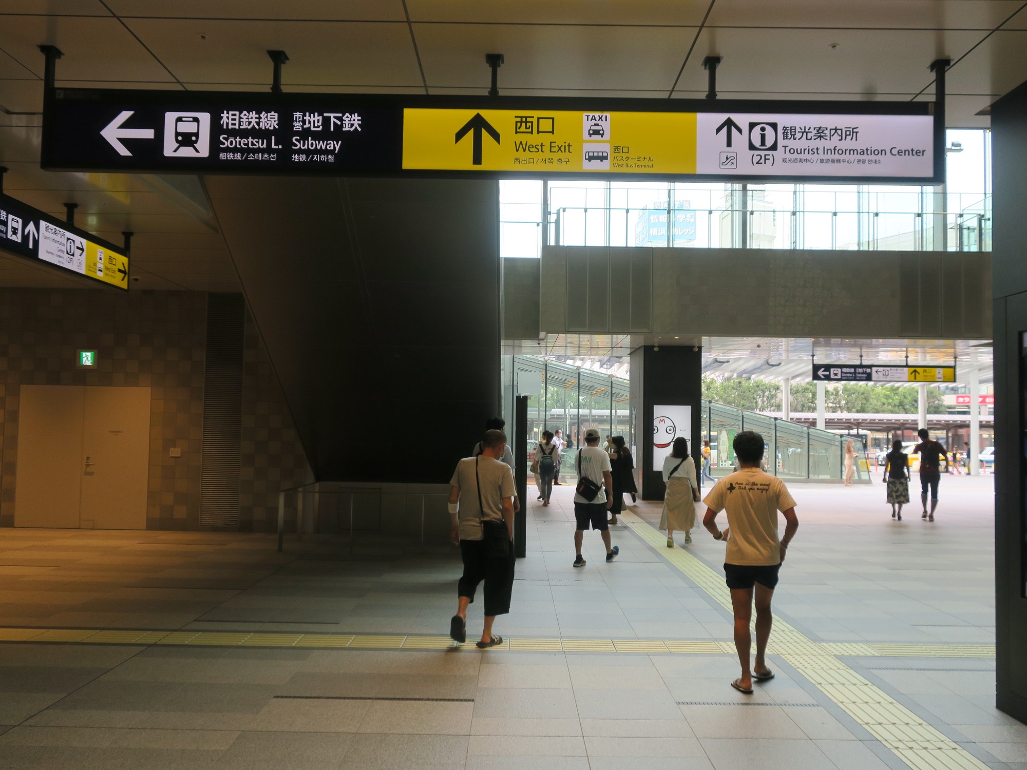 横浜市営地下鉄ブルーラインに乗り換える場合も、一旦改札口を出て、横浜駅の西口へ行きます。