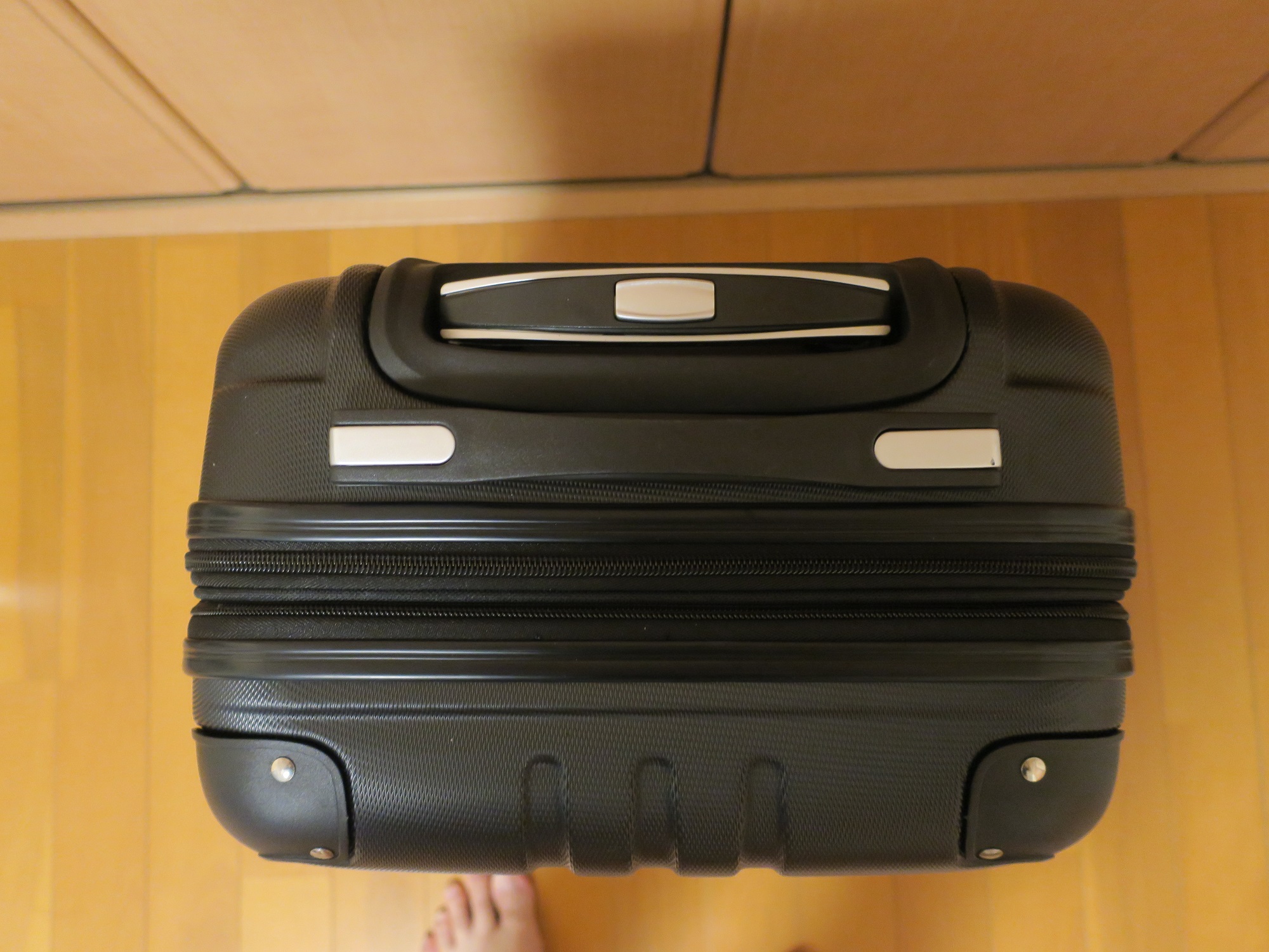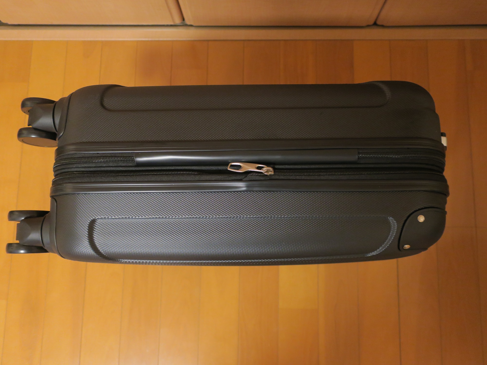 上から見たところ。キャリーバッグならではのキャリーバーとは別に、ちゃんと取っ手が付いています。これはプラスポイント。取っ手がないと、階段で困りますもんね。