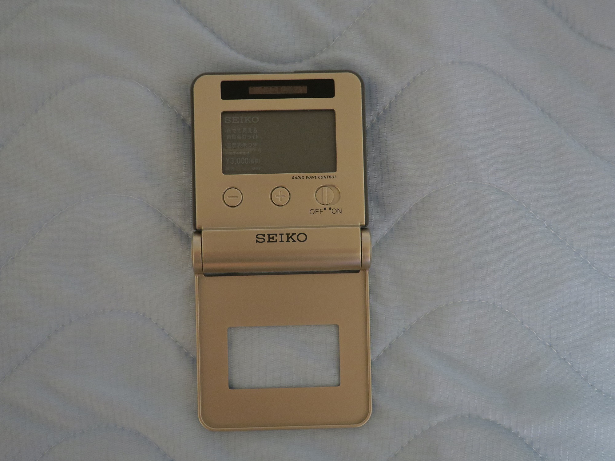 キューティー吉本は、普段使いの目覚まし時計とは別に、旅行用の目覚まし時計を持っています。で、その旅行用の目覚まし時計を持って、旅行に行ったのですが、飛行機の荷物に預けたら液晶パネルが割れまして。やむなく新しい目覚まし時計を買うことにしました。セイコーのSQ772Gです。