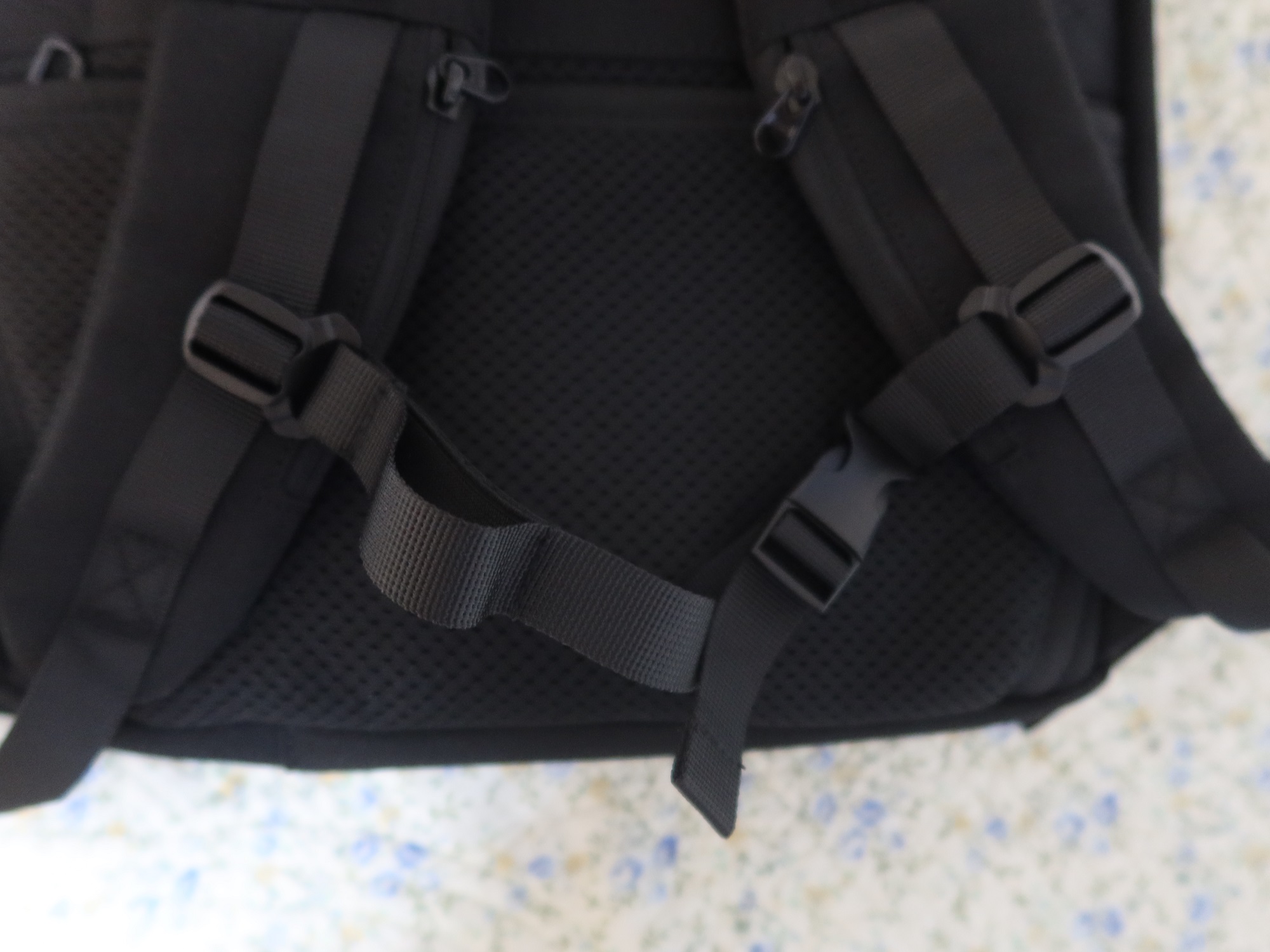 でもって、こちらが裏面・・・というか、背中に背負う方です。黒なのでちょっとわかりにくいですが、ここにもポケットが付いています。