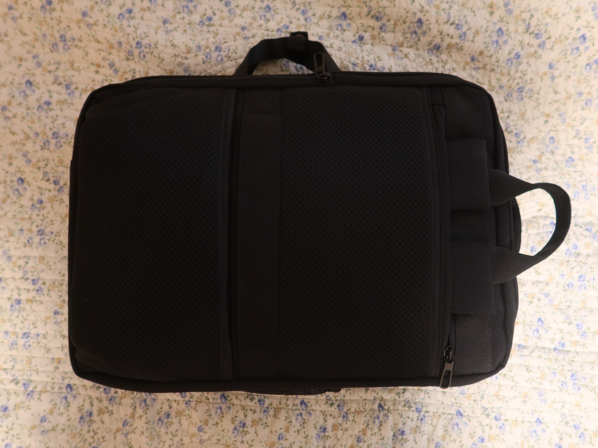 このかばんはスペースが3つありまして、出張に持って行ったときに私物と仕事道具を別々に入れることができます。なので、