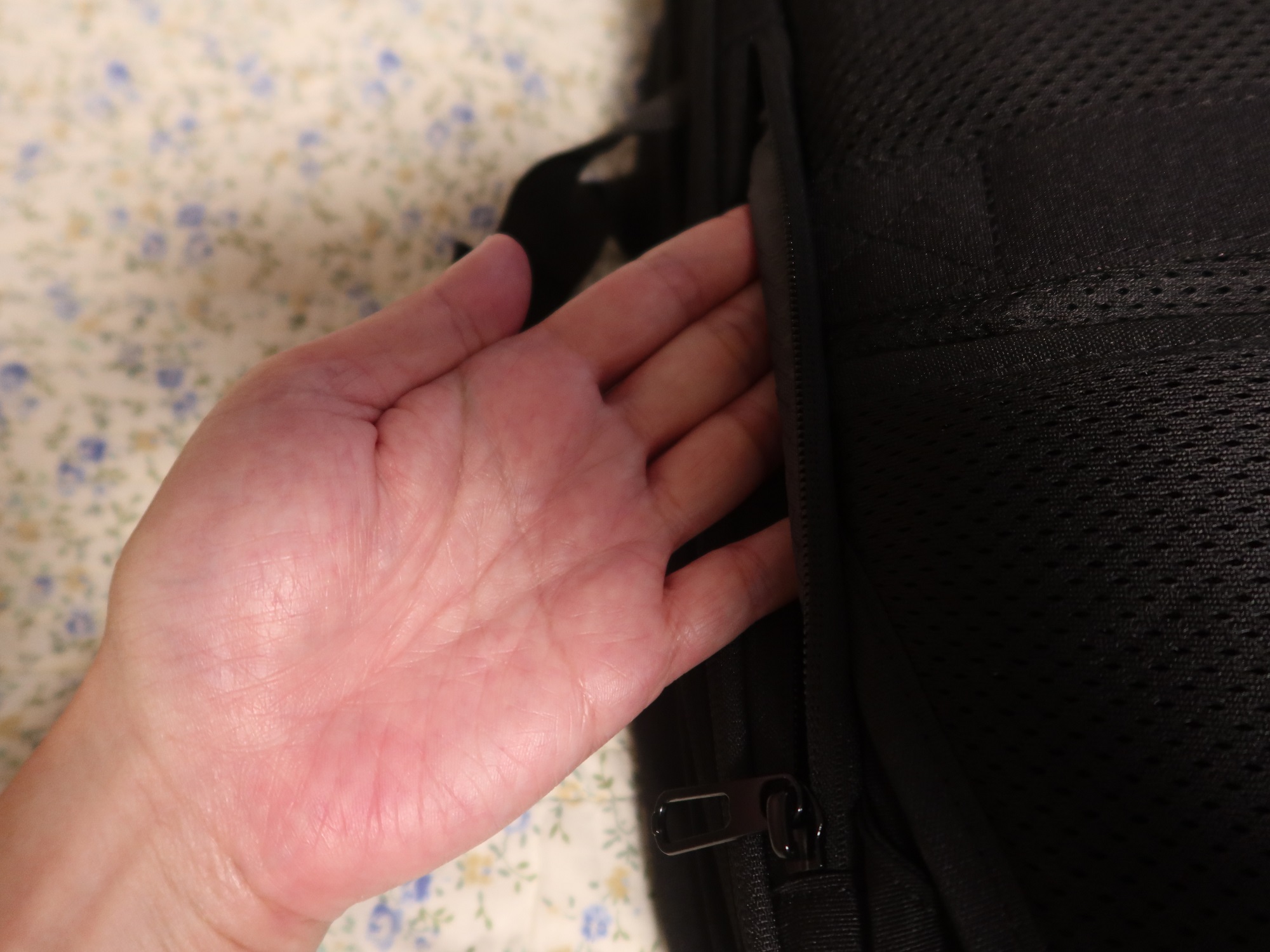 また、TSAロックに対応した南京錠も付いてきます。確かに、背中に背負うと、後ろから開けようとしている人がいたとしても気づきにくいわけで。大事なものを入れているときは、ちゃんとロックした方がいいですね。