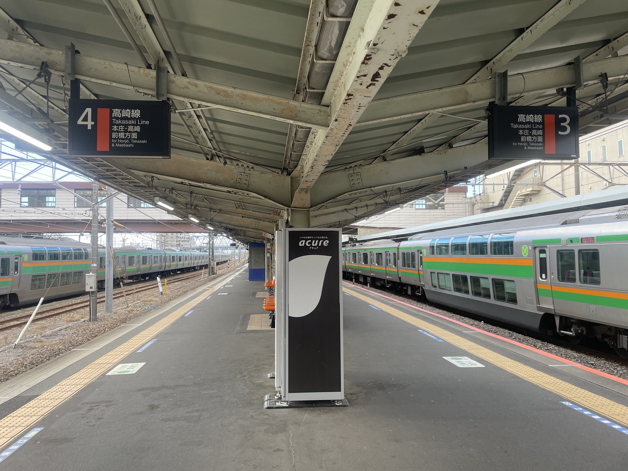 3番線・4番線です。主に本庄・高崎・前橋方面に行く列車が発着します。