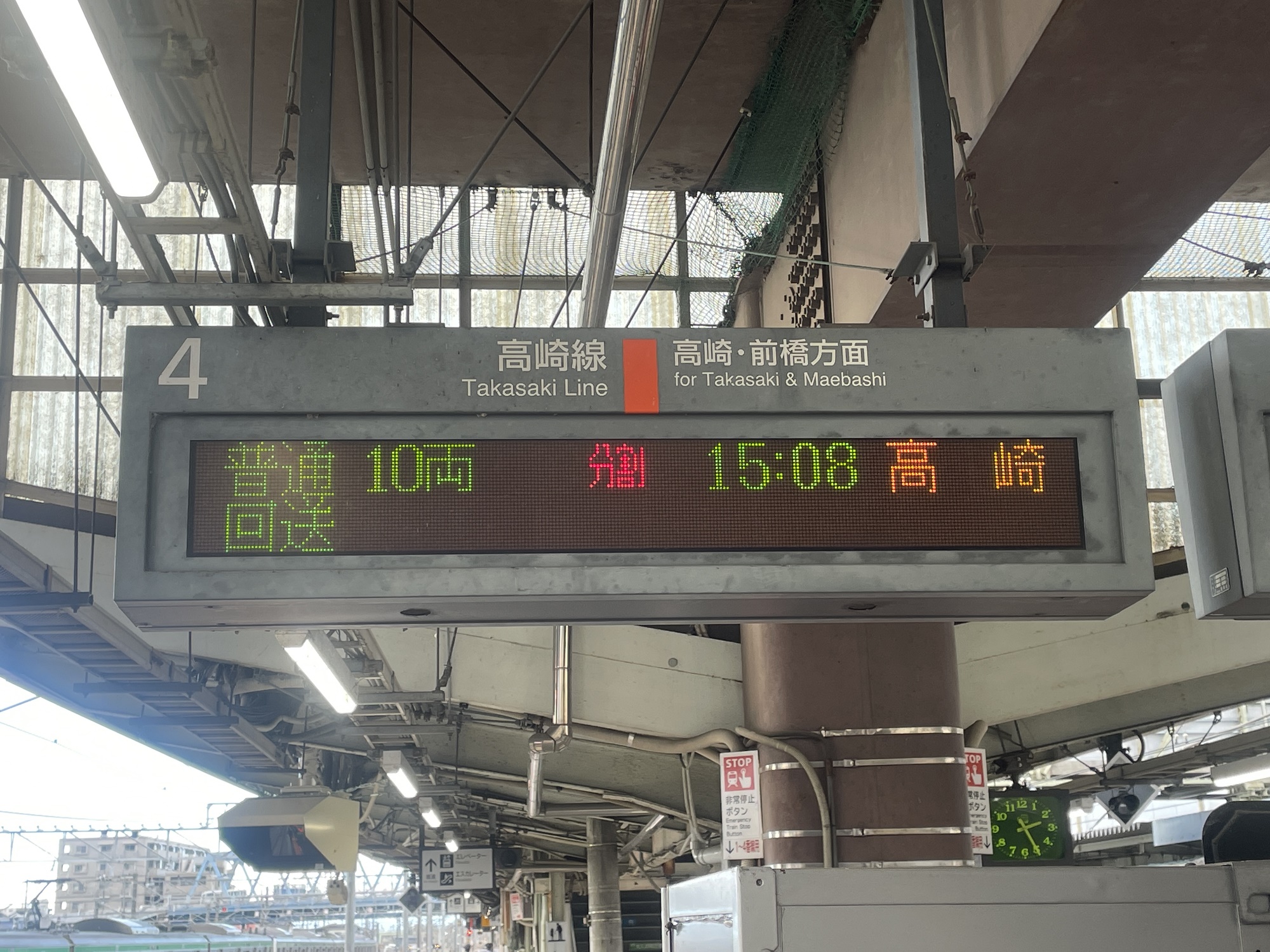 高崎線で15両編成の列車が走れるのは、籠原駅までです。このため、上野方面から来た15両編成の列車は、籠原駅で前5両を切り離します。逆に、高崎方面から来た10両編成の列車は、大抵籠原駅で後ろ5両を増結します。