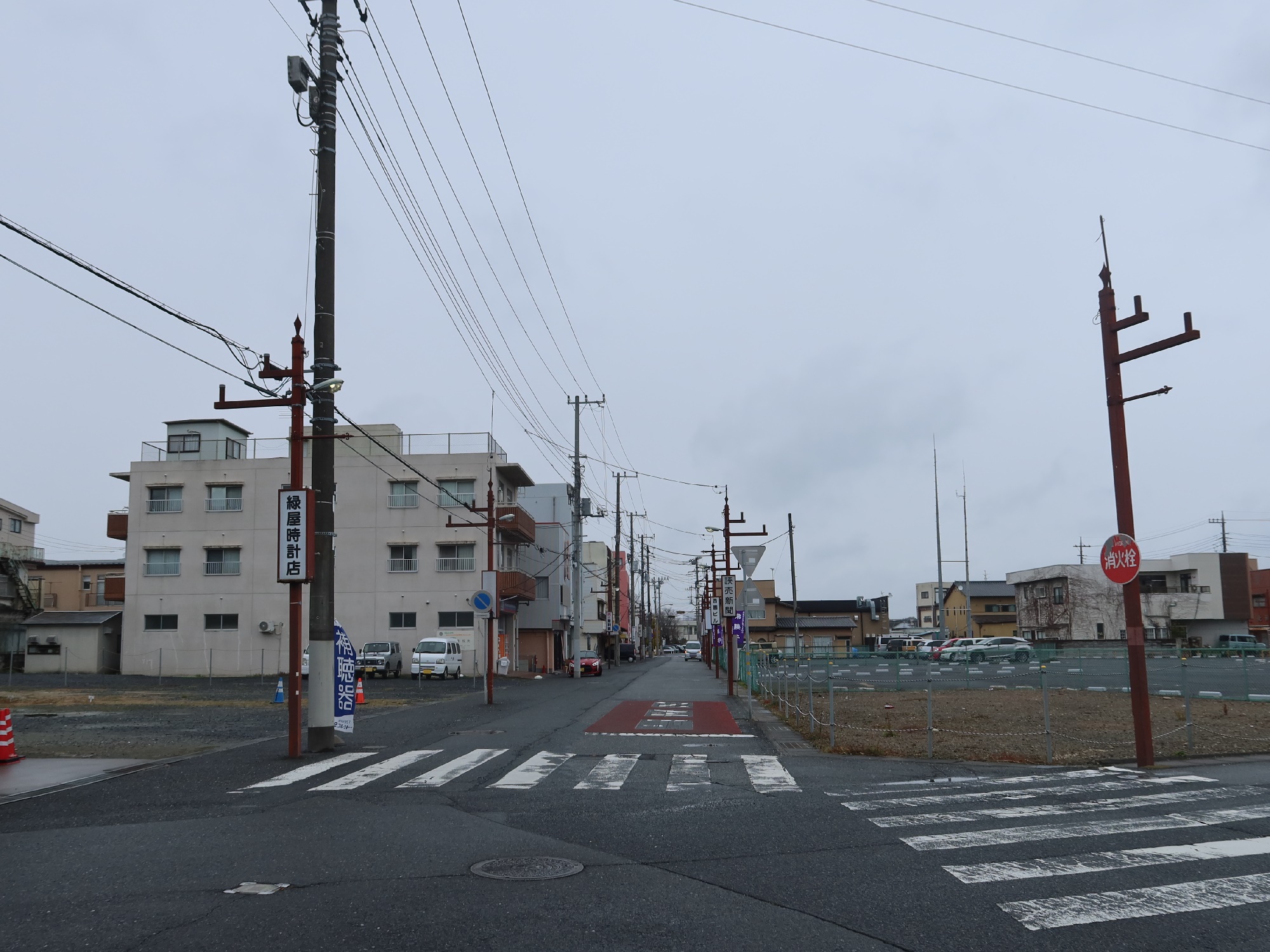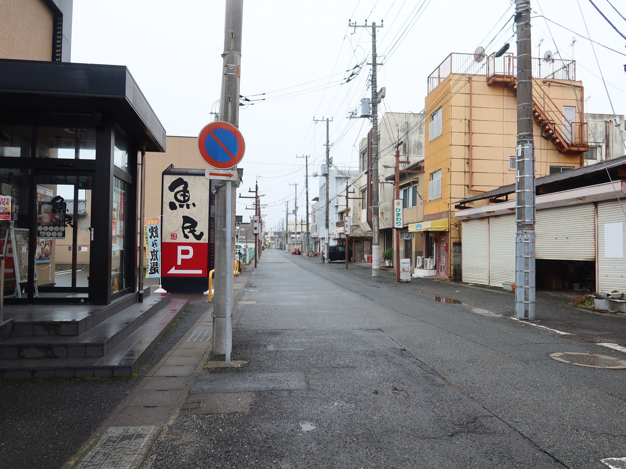 同じ通りを反対側から見ると、こんな感じ。お店よりも、空き地とか駐車場とかが目立つ感じでして。恐らく昔は、ここにもお店が立ち並んでいたんでしょうね。