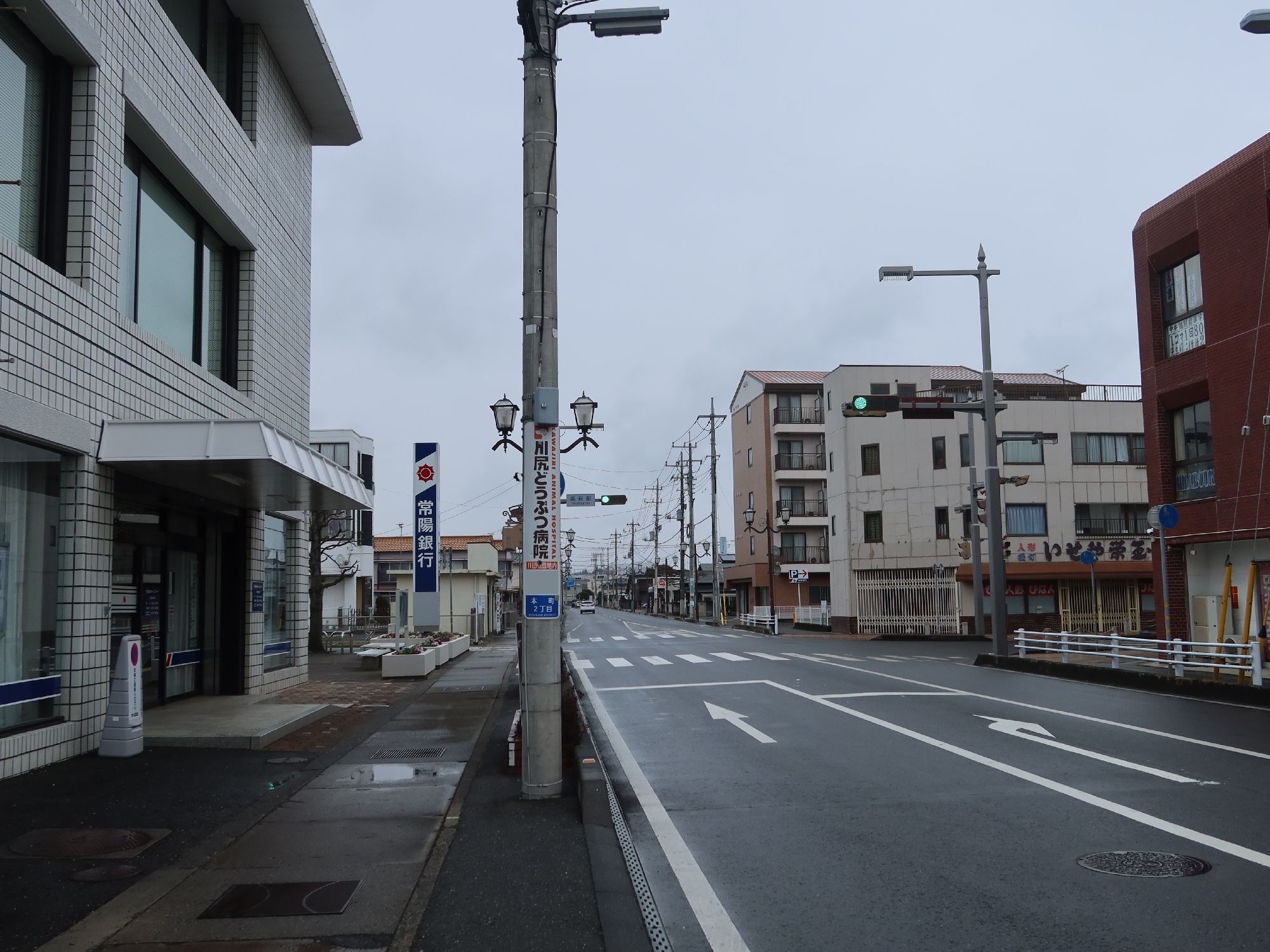 駅前の大通りの突き当りが、高萩駅交差点です。常陽銀行があるものの、これと言ってお店はなさそうです。