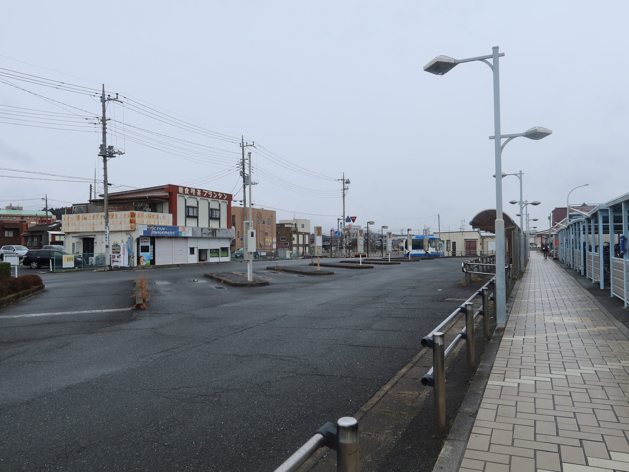 不必要なぐらい広いです。これだけ広いバスターミナルにもかかわらず、バスがずらりと並ぶ感じじゃないんですね。しかも、バスの営業所らしい建物がありません。定期券とかを売ってる窓口があっても良さそうなのですが。