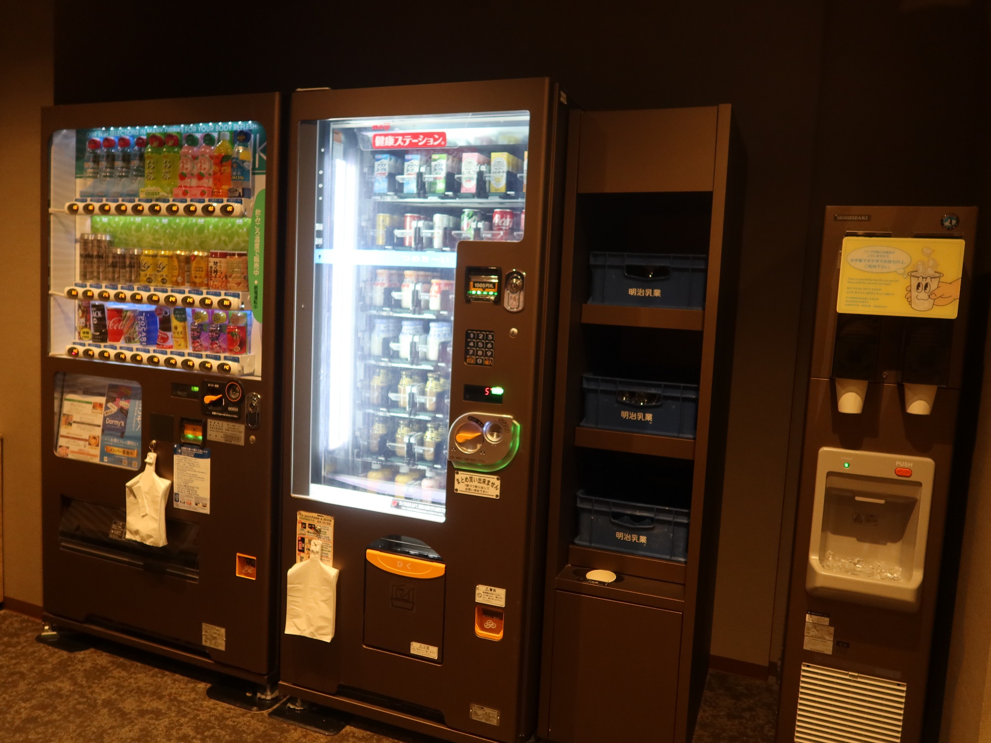 自動販売機は1階、6階、9階、10階に。製氷機は6階、9階、10階に。喫煙コーナーは1階と9階にあります。10階にはこのほかにも、自動販売機と製氷機、漫画コーナー、マッサージチェアがあります。