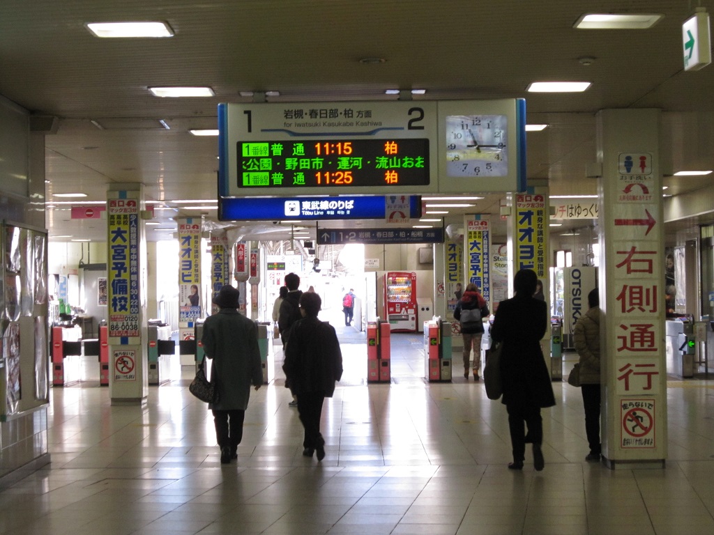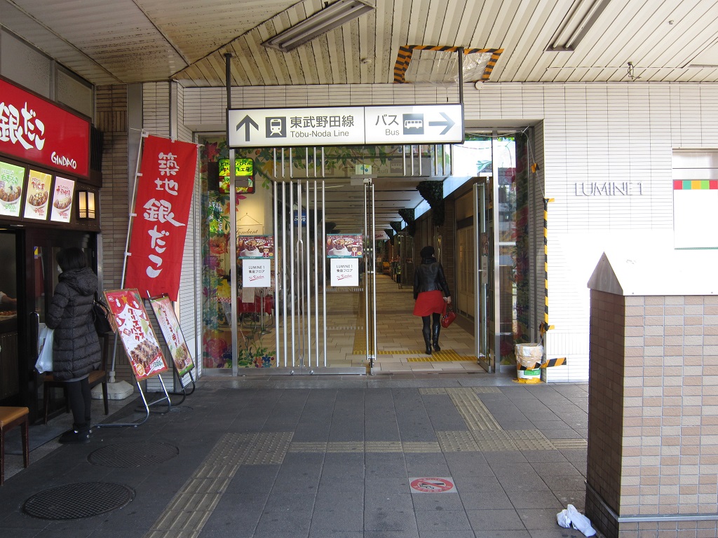 ・・・と、東口のルミネをうろうろしていたら、ありましたねぇ。ルミネ1階に改札口が。でも、「東武野田線」って書いてあったかなぁ・・・と、JR東口の階段の脇をよーく見ると・・・
