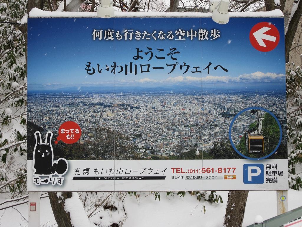 札幌もいわ山ロープウェイ 山麓駅付近の看板 無料駐車場もあります