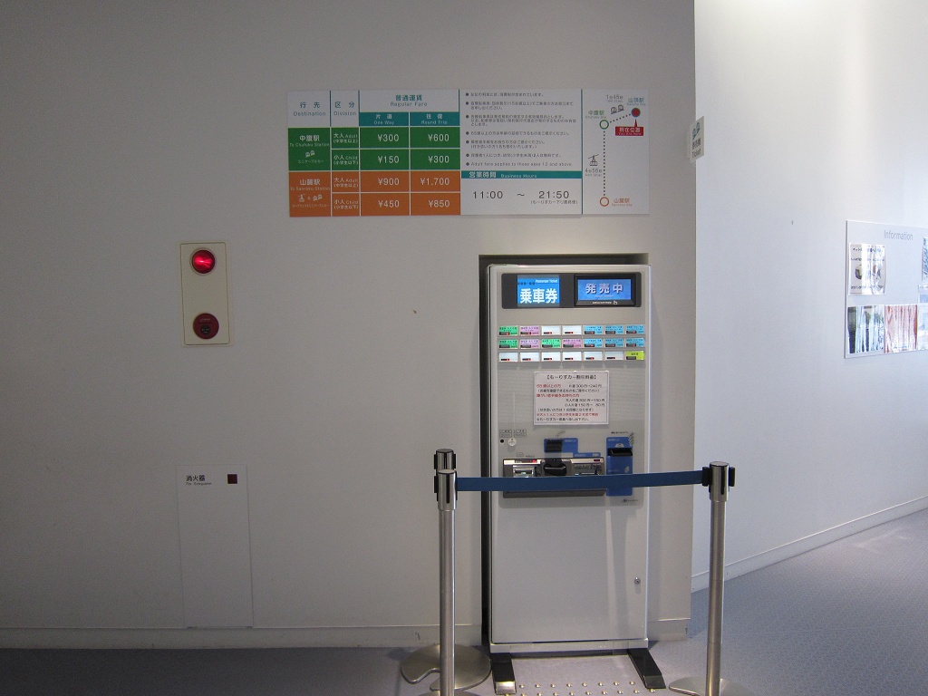 不思議なのは、中腹駅と山頂駅にも、券売機はあるんですよね。ま、山麓ー山頂の往復切符以外にも、片道とか一区間のみの切符もあるわけで、だから山麓駅以外でも切符を売ってないとまずいのですが。