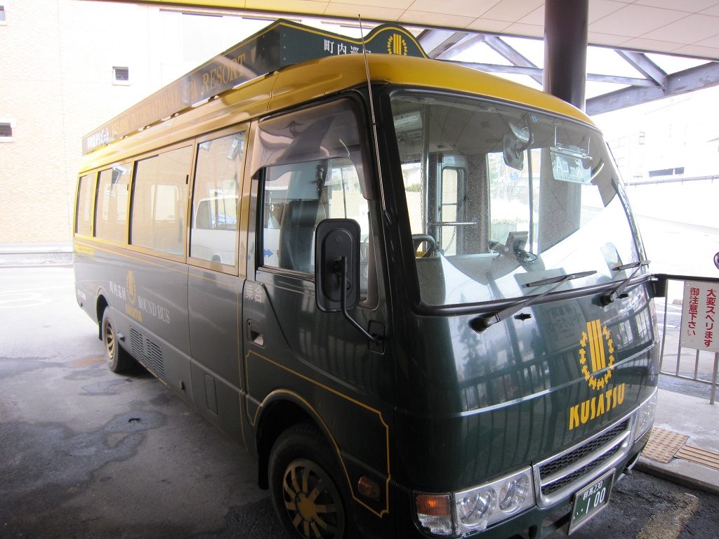 草津温泉バスターミナルで、草津温泉町内巡回バスに乗り換えます。このバスって、レトロな感じのバス・・・のはずなのですが、バスターミナルに停まっていたのは意外に普通の感じのマイクロバスでした。