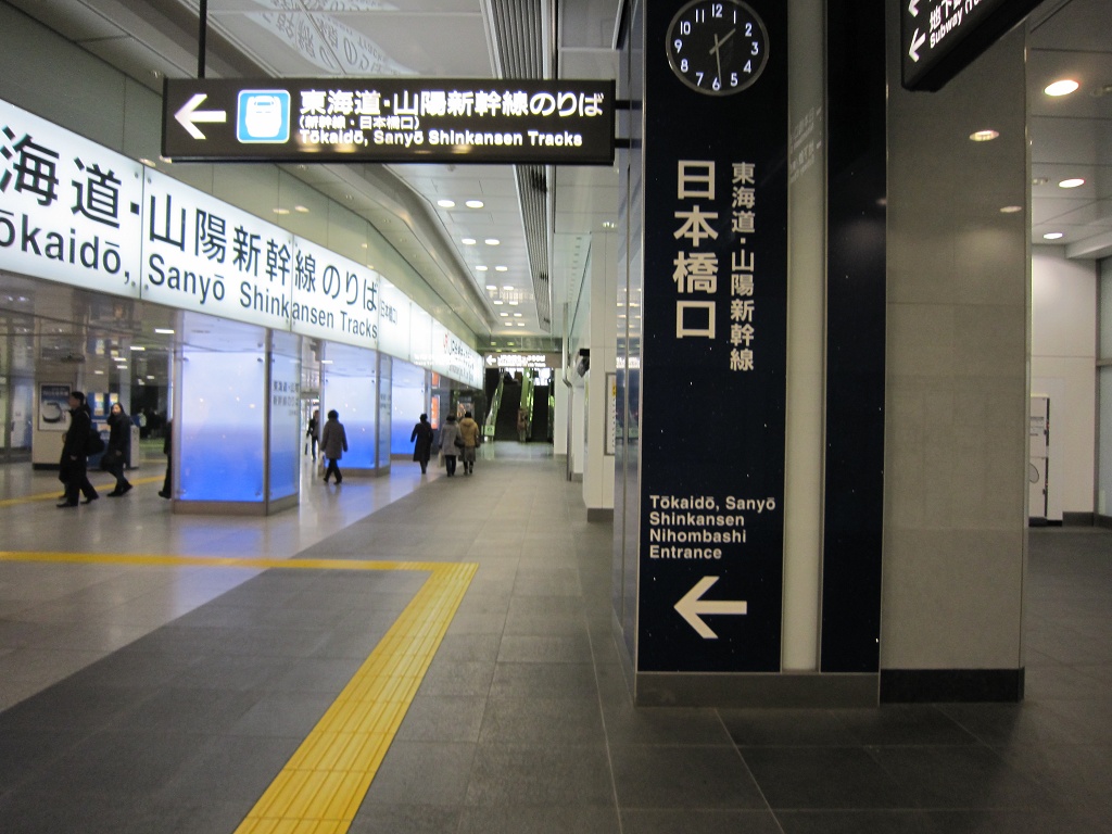 ちなみに、東海道・山陽新幹線は、東京方向が16号車で、新大阪・博多方向が1号車です。なので、東京ディズニーランドへ行く場合、1号車に一番近い階段、つまり八重洲南口への階段を降りると乗り換えが楽、と言う攻略法があったりします。(京葉線・武蔵野線に乗り換える場合、八重洲南口から更に南を目指さなければならない)