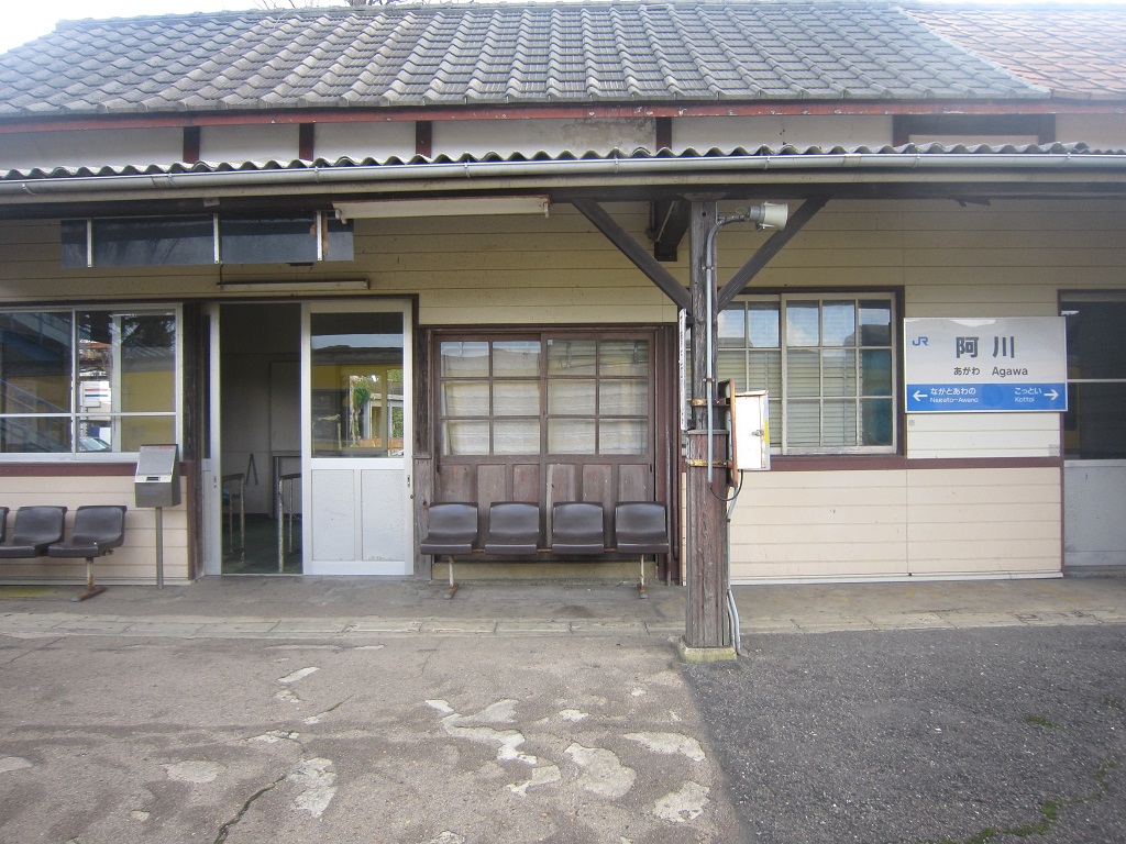 山陰本線って、こんな味のある駅が結構あるんですよ。ここ、無人駅なんですけど立派な駅舎で、きっと国鉄時代は駅員さんがいた駅なんでしょうねぇ。