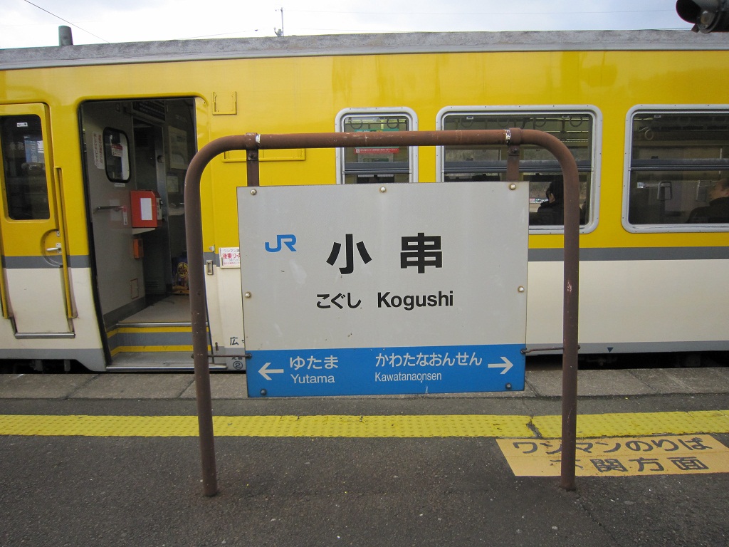 特牛、湯玉と、なんか食べ物を連想させられる駅がありまして、列車は小串駅に到着です。ここで、また降ろされます。