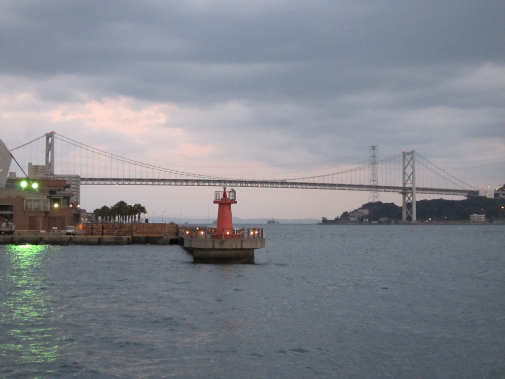 で、関門大橋が見えます。ああ、やっぱりサンフランシスコとかぶってる。ちなみに、橋を歩いて渡ることはできません。歩いて渡る人は、トンネルです。