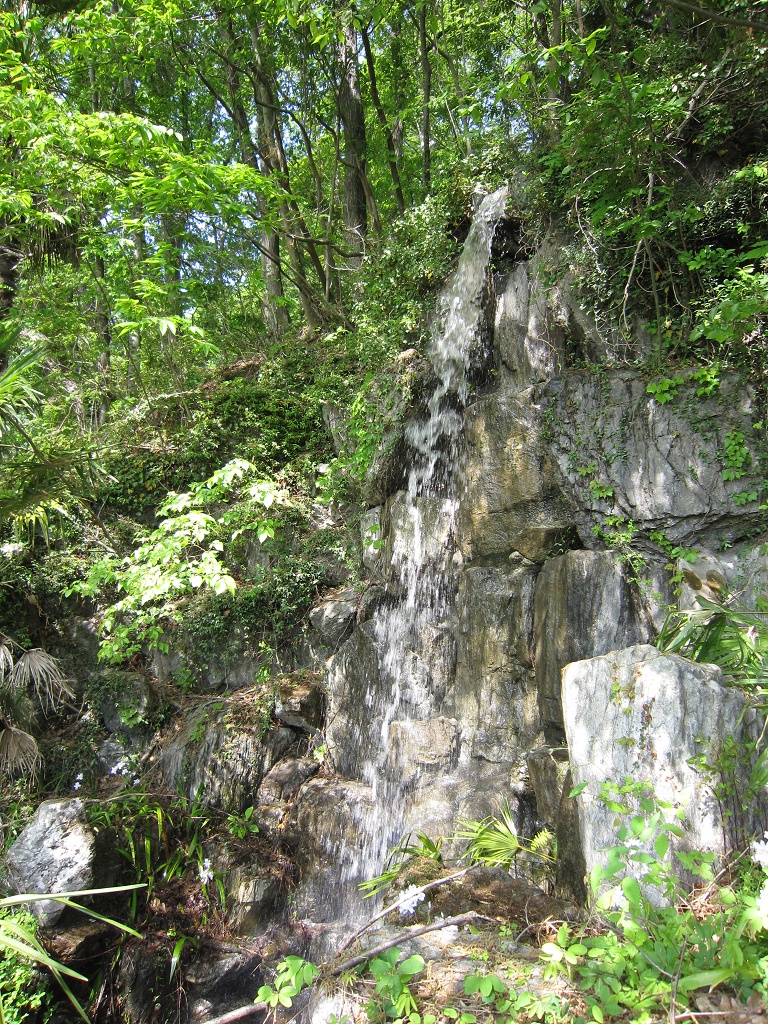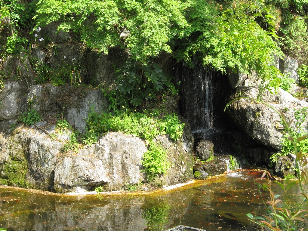 滝壺のあたりがこんな感じ。池には金魚が泳いでいます。また、水車小屋もあるのですが、この水車小屋を何に使っているのかは不明で、恐らく飾りなんでしょう。