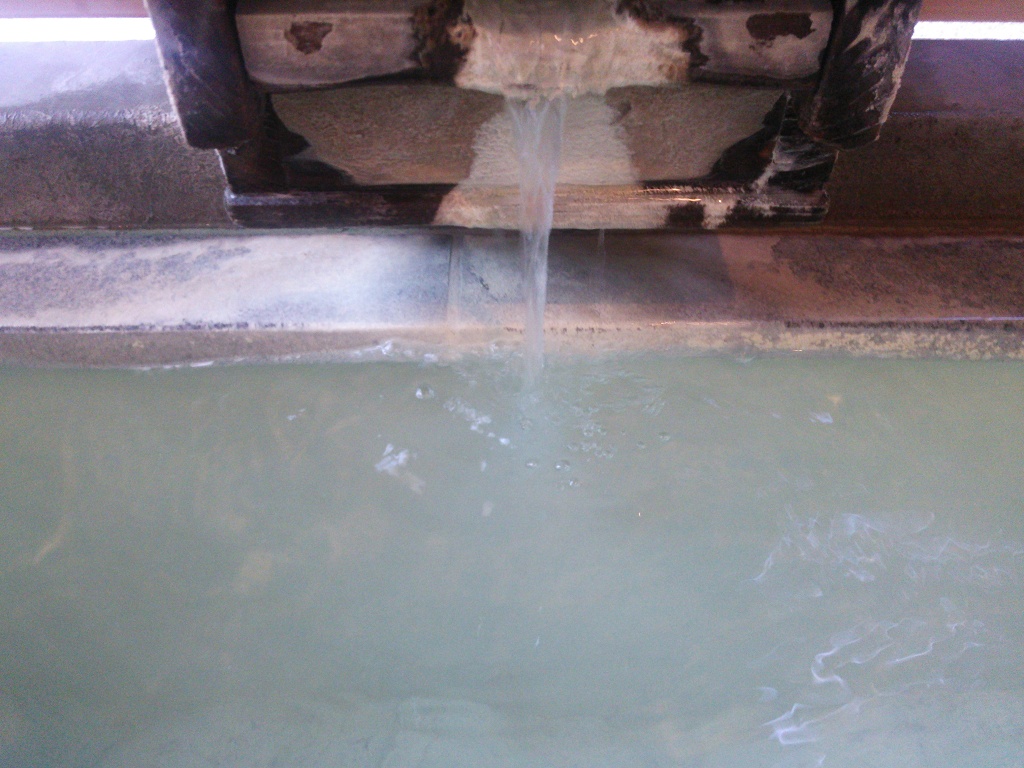 お湯は、酸性・含硫黄・アルミニウム-硫酸塩・塩化物泉です。硫黄の匂いがぷんとする、白い濁り湯です。お湯は草津温泉に近い感じです。かなり薬効の強いお湯で、いわゆる美人湯と言われています。また、なぜか知らないのですが、普通の温泉よりよくあったまるんです。確かに、血行が良くなるって書いてありましたけどね。