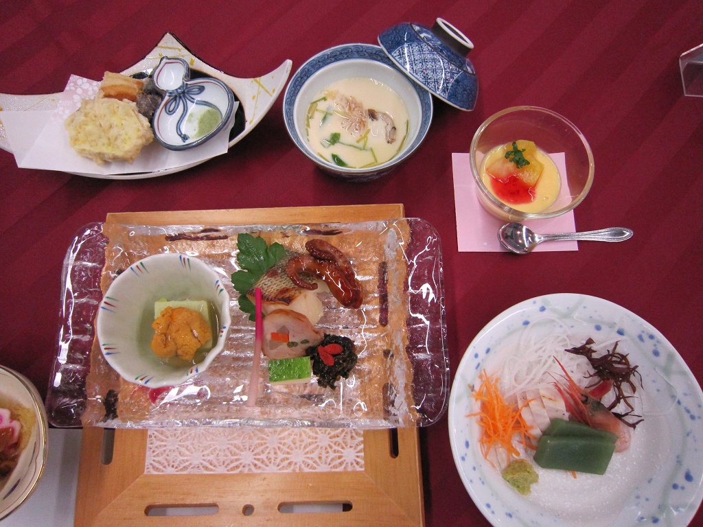 これが晩ご飯です。一見すると、普通の旅館の、普通の晩ご飯のように見えるのですが・・・