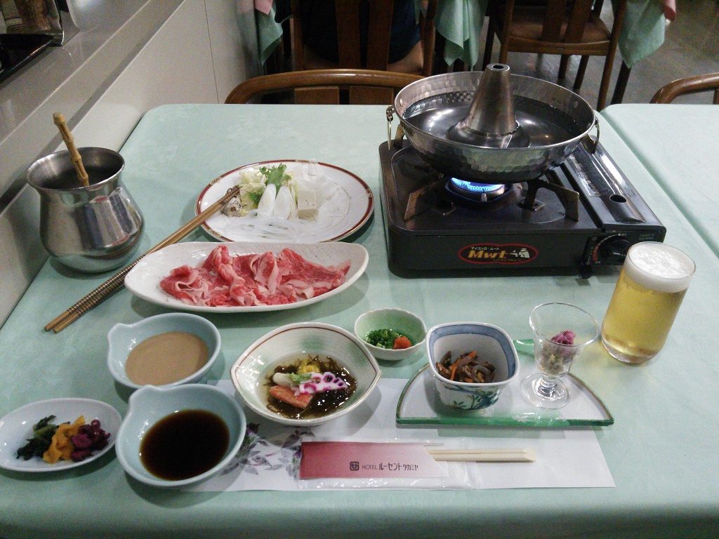 二日目の晩ご飯は、しゃぶしゃぶにしました。恐らく米沢牛だと思うんですけどね。こちらもなかなかの美味でしたよ。ただ、想像していたよりもちょっと分量が少なめでした。あく取りが置いてあるのですが、あくを取る必要なかったし。