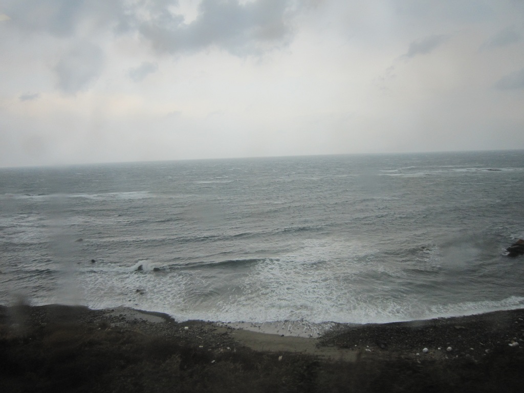 出雲 JR山陰本線 出雲市~益田 午前中が、鳥取県横断。午後が島根県横断・・・なのですが、その島根県横断がピンチに。季節外れの雨(ちなみに、去年の年末の話です)と、ものすごい風で、電車がなかなか進みません。写真のとおり、海も大荒れです。「強風のため運転を見合わせます」「反対... 2013.07.22 出雲益田
